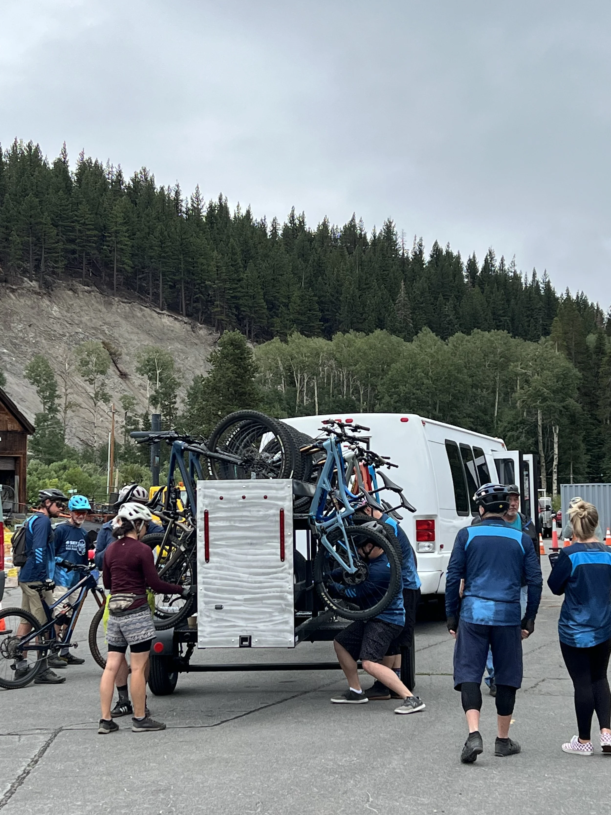 We pick up in the lower parking lot at the base area and transport riders to the top of Sky Tavern via Mt. Rose Highway. Riders then access the Top of Sky and our trail network via the USFS service road.